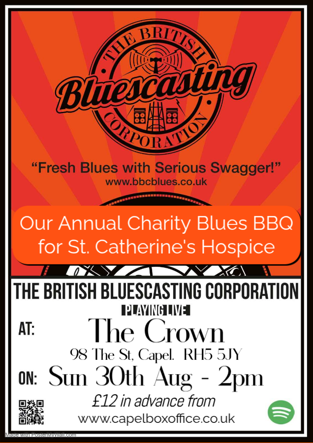 The Blues permeates much of modern western music and Bletchfest’s Blues Night on Saturday November 18th at Bletchingley Village Hall showcases those influences with one of the modern genre’s leading local bands in The British Bluescasting Corporation. We’re supported by Breakthru’ whose repertoire includes familiar tunes influenced by the blues. You can read the story of Blues Night on our blog at https://www.bletchfest.org/events/bletchfests-blues-night where you can also find a link to book tickets. A licensed bar with hot food will be available on the night. Capacity is limited so book early to guarantee your place.