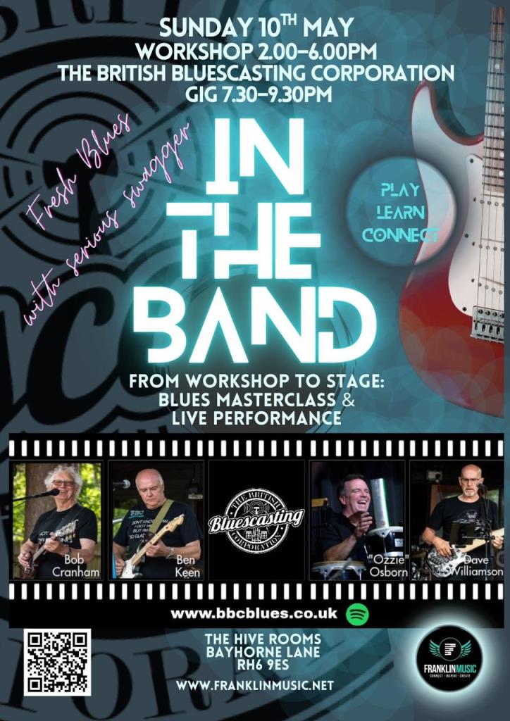 The Blues permeates much of modern western music and Bletchfest’s Blues Night on Saturday November 18th at Bletchingley Village Hall showcases those influences with one of the modern genre’s leading local bands in The British Bluescasting Corporation. We’re supported by Breakthru’ whose repertoire includes familiar tunes influenced by the blues. You can read the story of Blues Night on our blog at https://www.bletchfest.org/events/bletchfests-blues-night where you can also find a link to book tickets. A licensed bar with hot food will be available on the night. Capacity is limited so book early to guarantee your place.